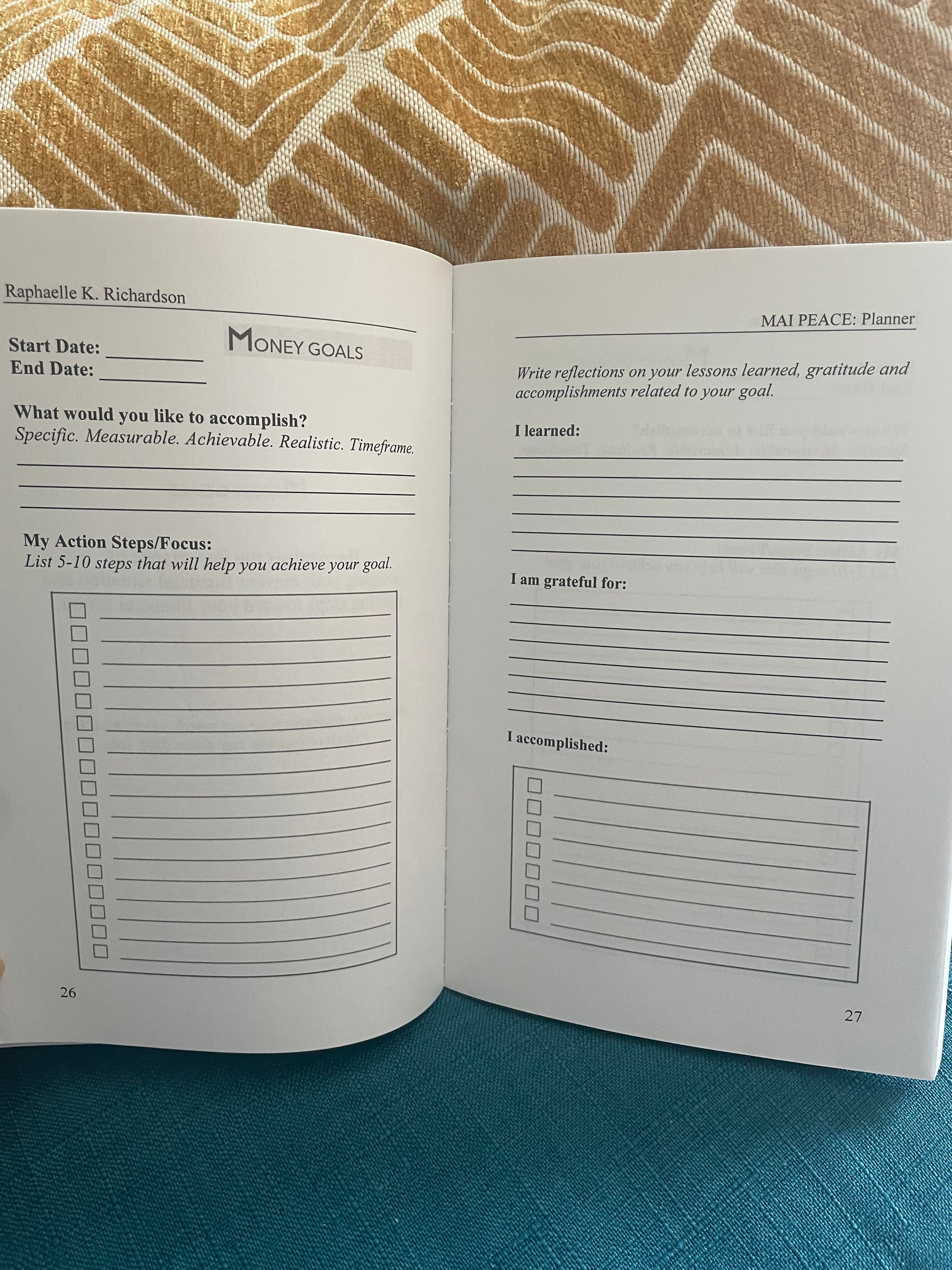 The MAI PEACE Planner is designed for everyone to use: moms, dads, business people, athletes, teachers, students, professionals, entrepreneurs, men and women alike. The activity sheets are designed to assist you in achieving your goals.