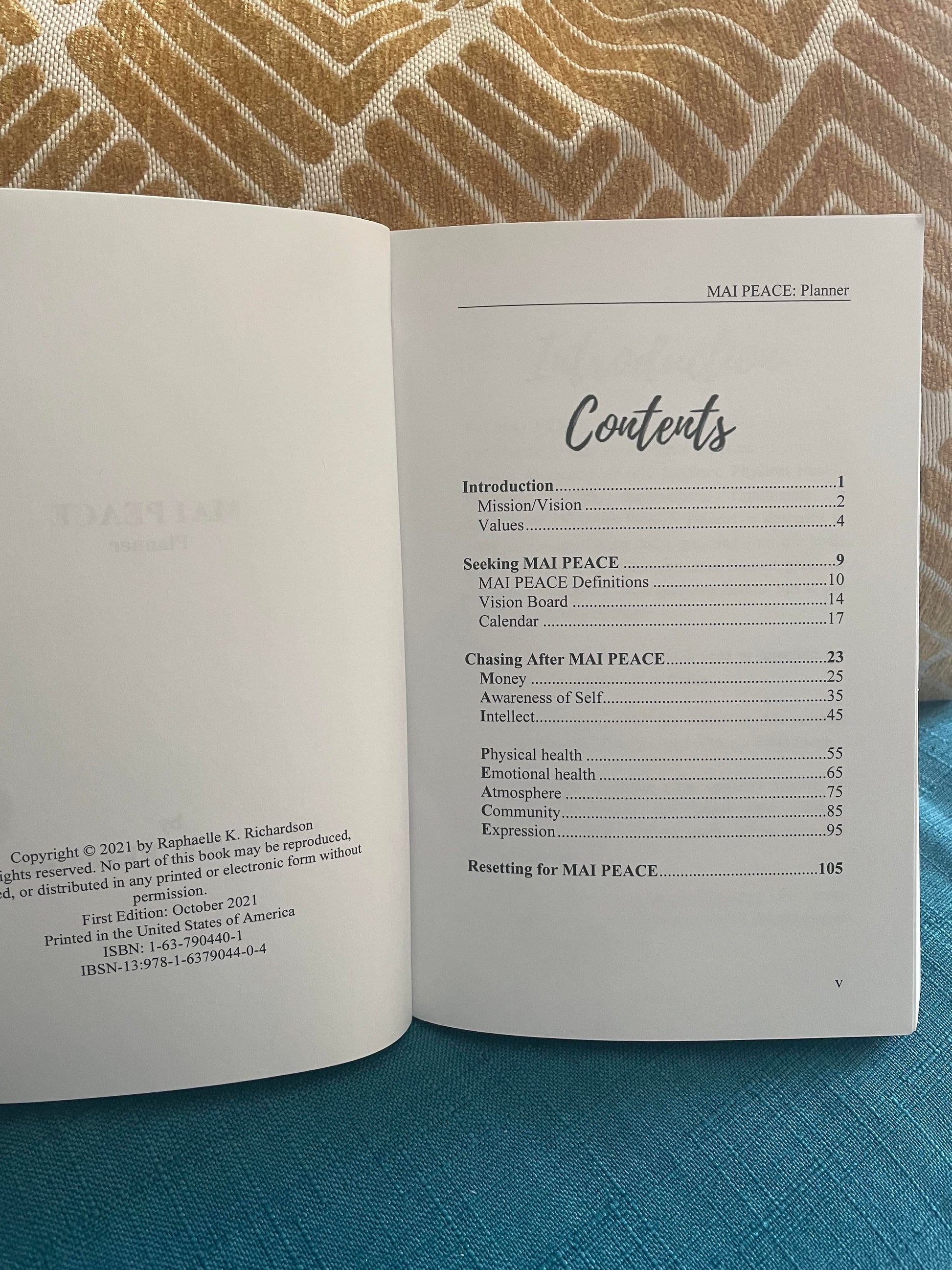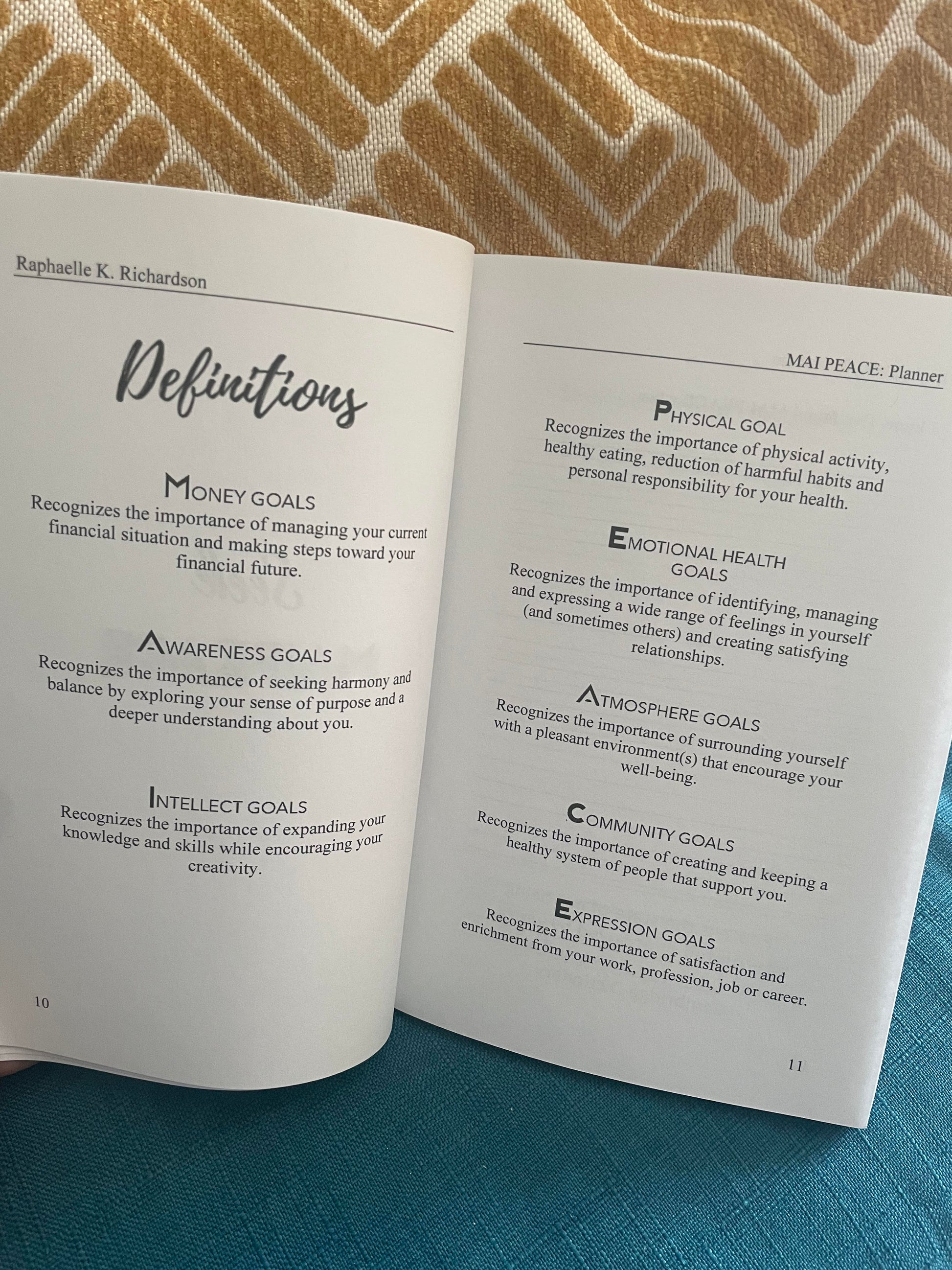 The demands of life can be overwhelming. If you’ve ever felt like one area of your life is taking all your attention or maybe you want to live life to the fullest, the MAI PEACE Planner is for you. The MAI PEACE Planner was created to help you balance all areas of your life: Money, Awareness of self, Intellect, Physical Health, Emotional Health, Atmosphere, Community & Expression.
